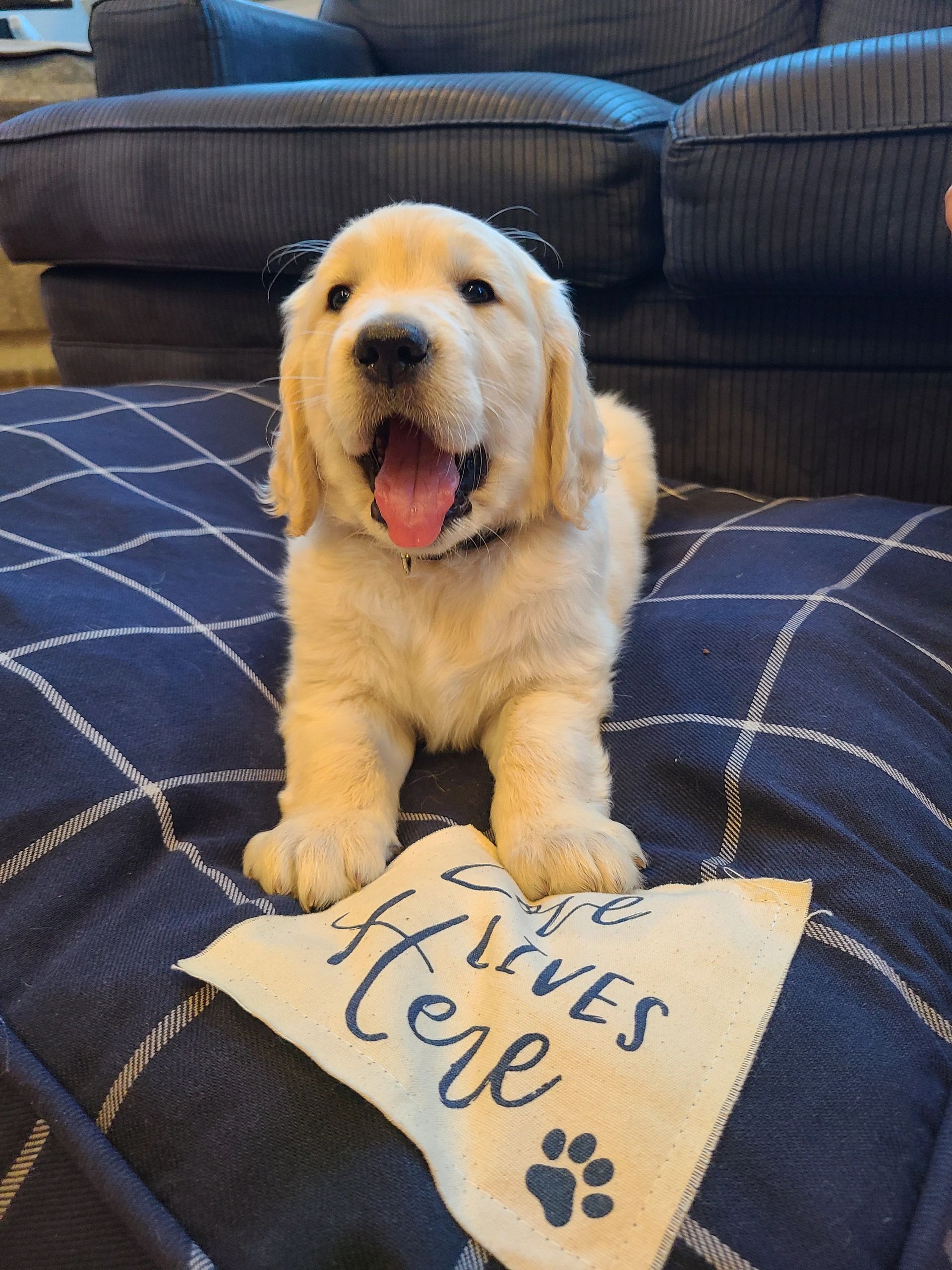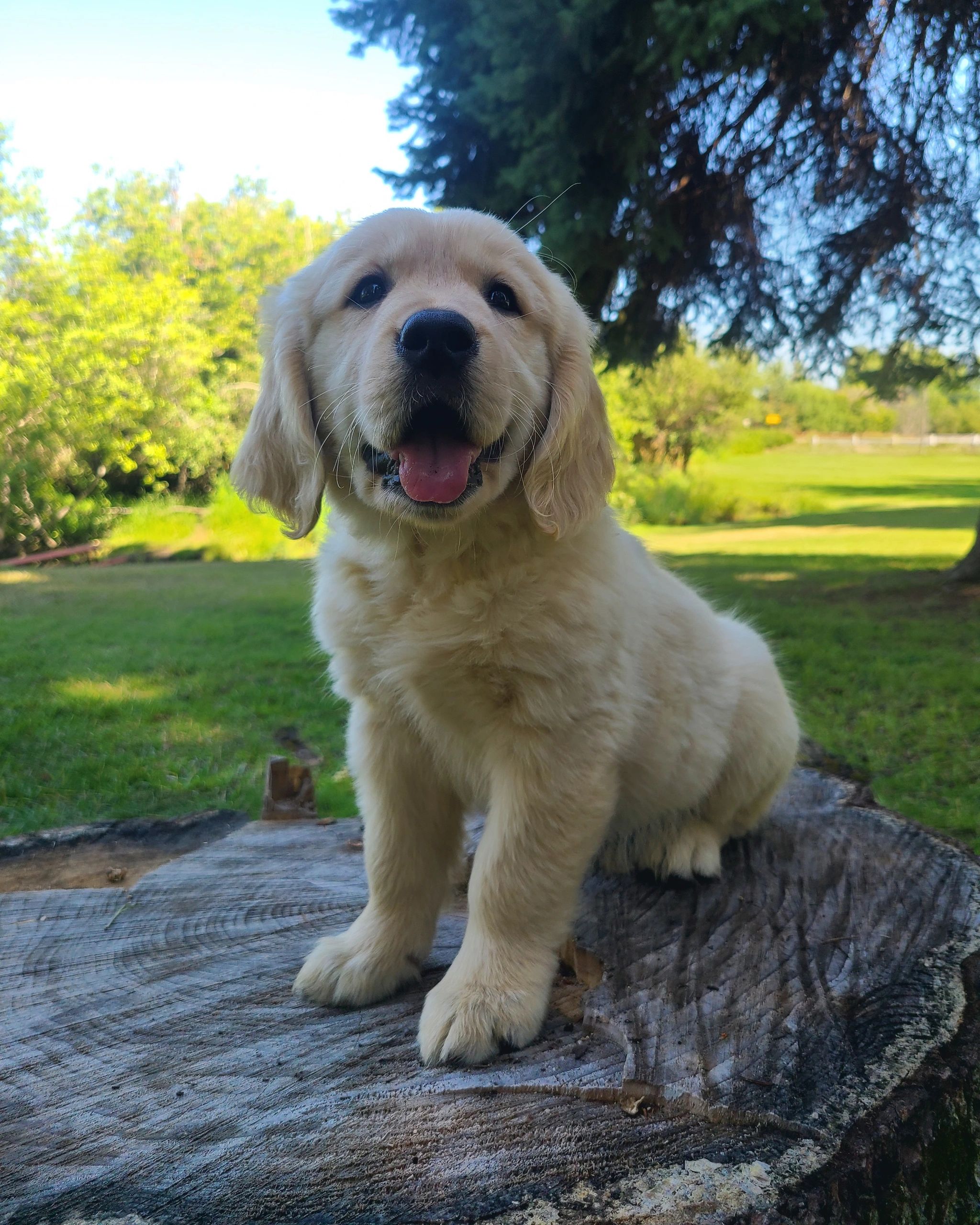 Golden Retrievers are smart, easy to train, affectionate, and loyal. They are great with kids, strangers, and other pets. Our dogs interact with our kids from birth and handled daily. We provide our puppies with many opportunities for social interactions and expose them to other pets, like our cats and cows.